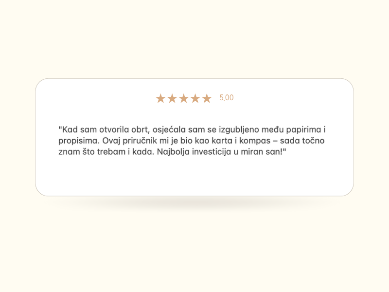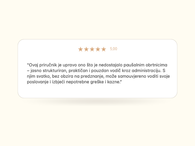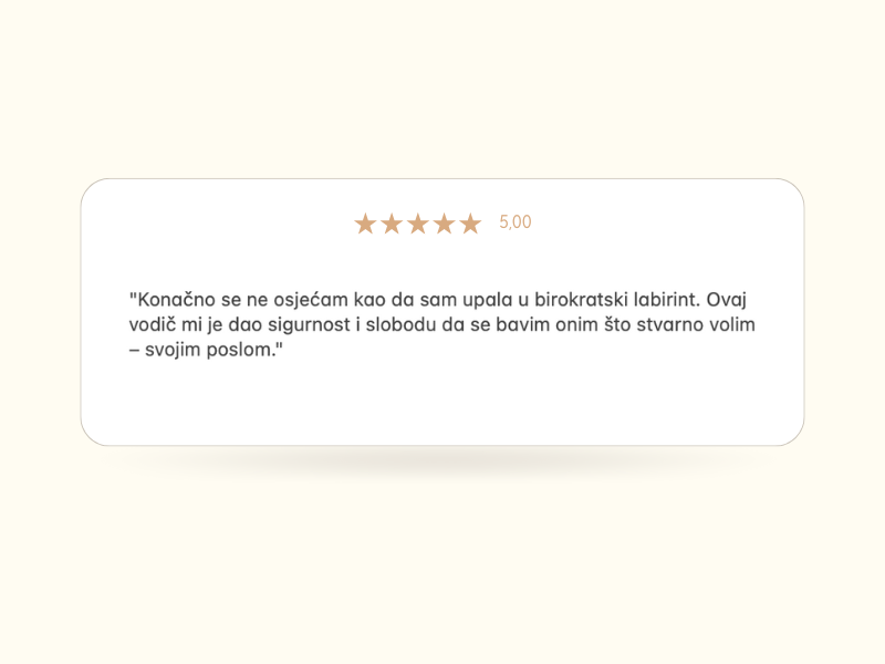 Ovo nije suhoparna teorija nego konkretan alat koji će ti olakšati administrativni dio poslovanja. Više nikad nećeš gubiti sate na googlanje – sve odgovore sada imaš na jednom mjestu.