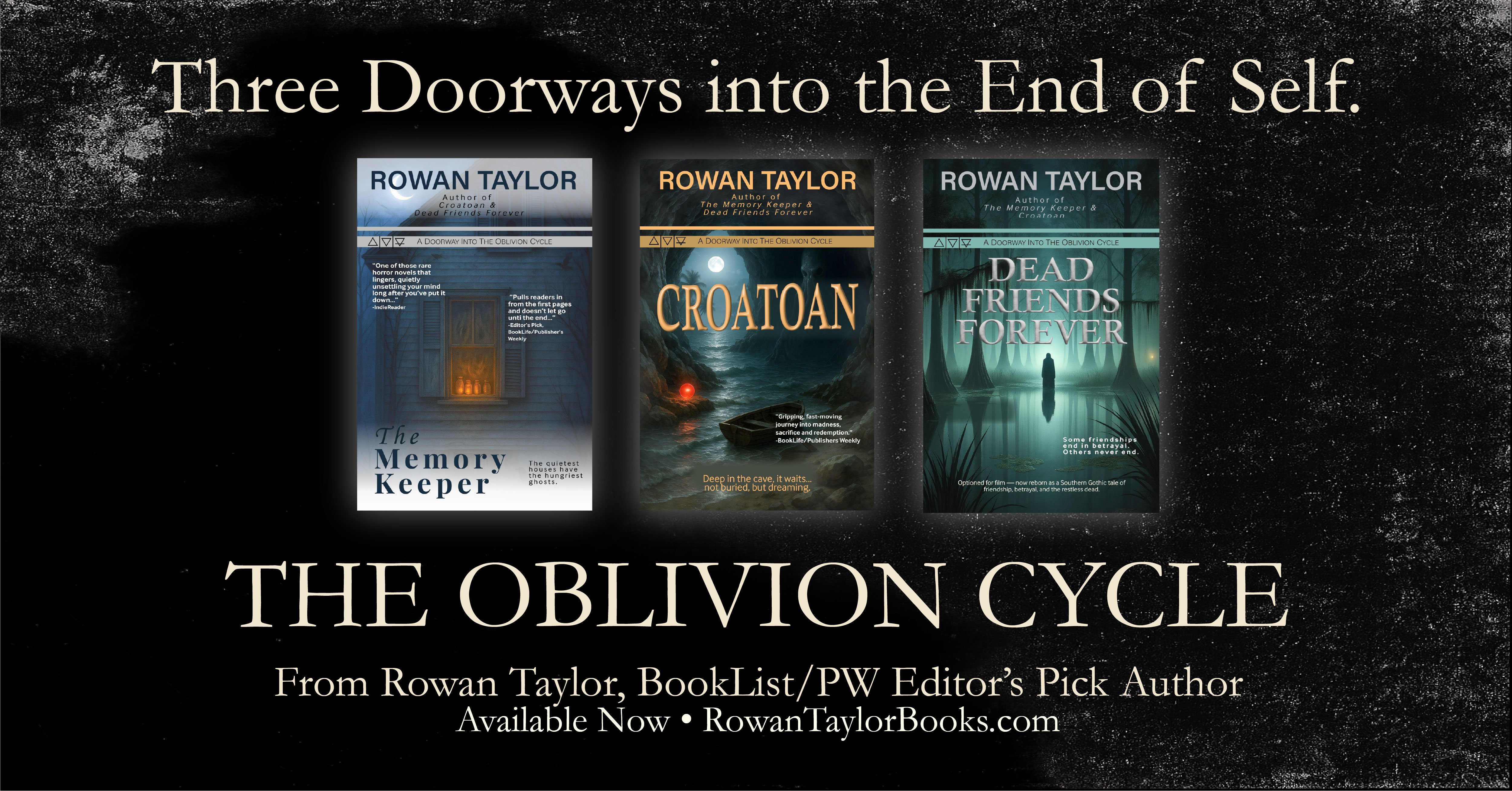 Her novels form The Oblivion Cycle — a linked body of work where haunted houses breathe, mirrors remember too much, and the past does not stay buried. These are not stories about jump scares or spectacle, but about what happens when attention becomes a trap and belonging turns predatory.