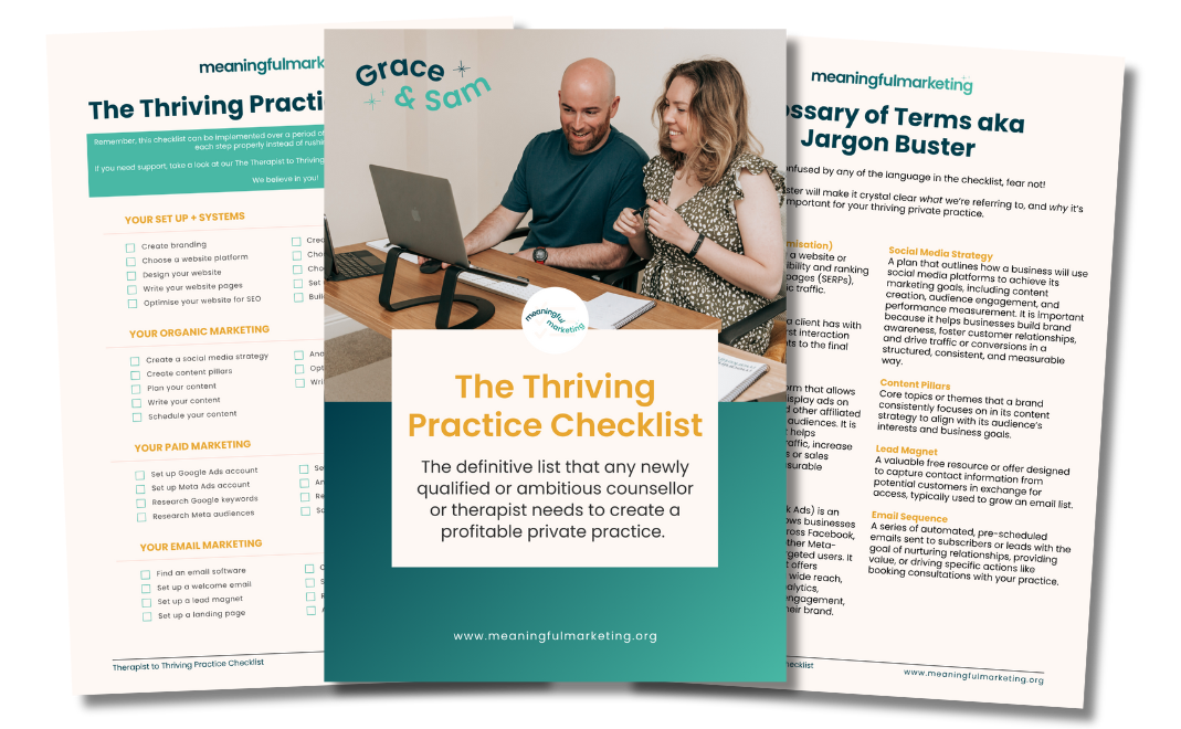 Download the definitive checklist that any newly qualified or ambitious counsellor or therapist needs to create a profitable private practice.