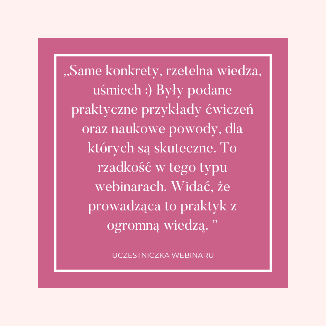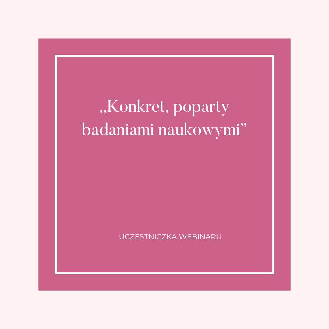 Moje webinaria są rzeczowe, konkretne, a przekazywana wiedza poparta badaniami naukowymi. Żadnego lania wody, czy niepotrzebnych monologów. Same konkrety i 100% zadowolonych uczestników.