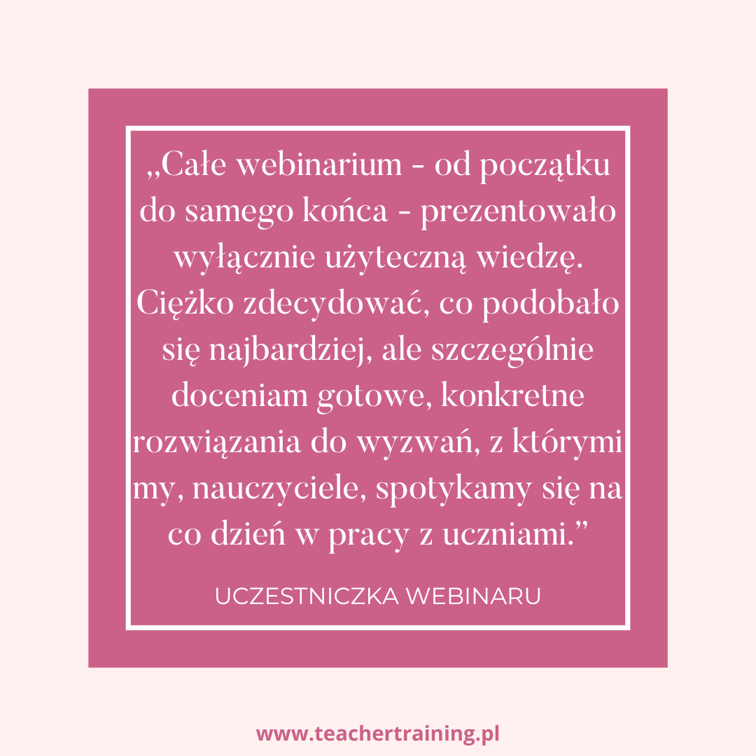 👉poznasz bardzo konkretne rozwiązania, które od razu będziesz w stanie wdrożyć w klasie;