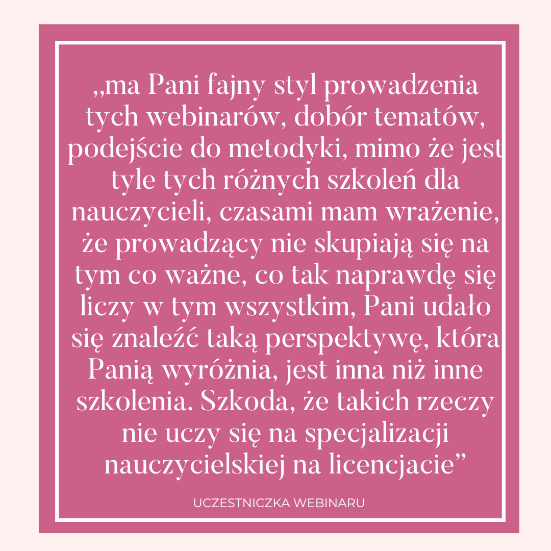 Dostajesz świetną wartość w baaardzo przystępnej cenie. Mimo wszystko nie przekonuje Cię ten opis? Zobacz, co inni mają do powiedzenia na temat moich webinariów: