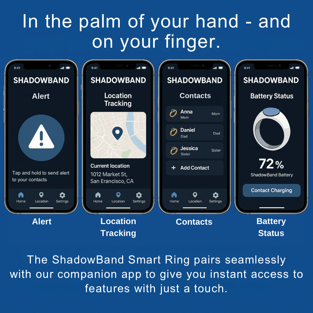 Tired of bulky, obvious safety gadgets, I envisioned an elegant, discreet smart ring that puts peace of mind at your fingertips - because true empowerment starts with feeling safe. Whether you’re jogging, traveling, on a date, or simply living life, ShadowBand™ is designed to help you stay connected and protected - without sacrificing your style.