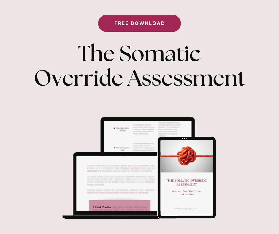 The Somatic Override Assessment is your first step towards different. In this free, 4-page guide, you’ll discover: