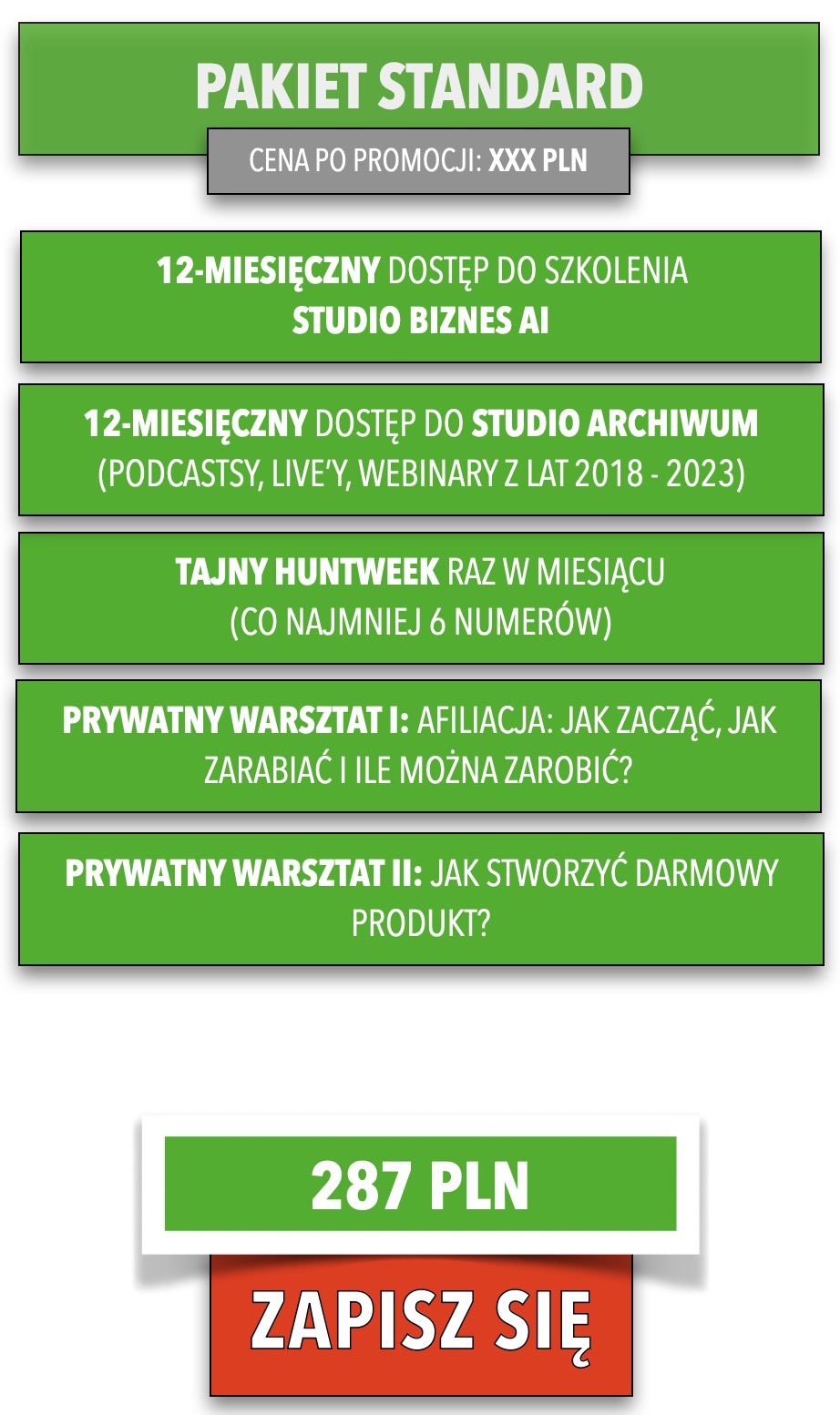 Ponad 20 lekcji! To było jedno z moich trzech flagowych szkoleń. Uczciwie przyznam, że w przeciwieństwie do innych szkoleń, wcale źle się nie zestarzało. Polecam w szczególności materiały o:
