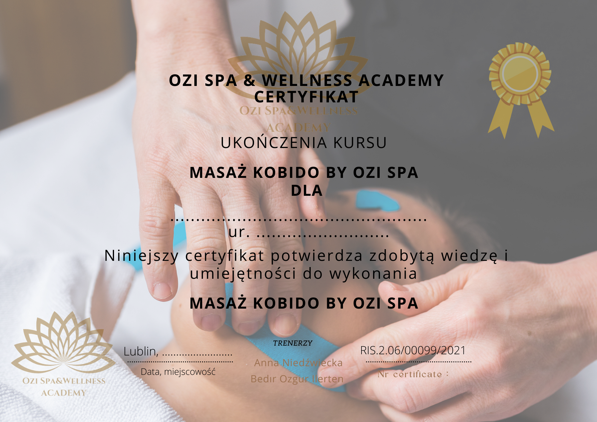 Ozi Spa & Wellness Academy to renomowana placówka szkoleniowa z siedzibą w Lublinie, specjalizująca się w kształceniu terapeutów spa & wellness. Nasza oferta obejmuje szeroki zakres kursów, w tym masaże klasyczne, ajurwedyjskie, orientalne, masaż bańką, masaż relaksacyjny, masaż gorącymi kamieniami, pracę z kryształami górskimi, masaż głowy dla fryzjerów, masaż Kobido by Ozi Spa oraz diagnozę klienta i dobór technik masażu twarzy.