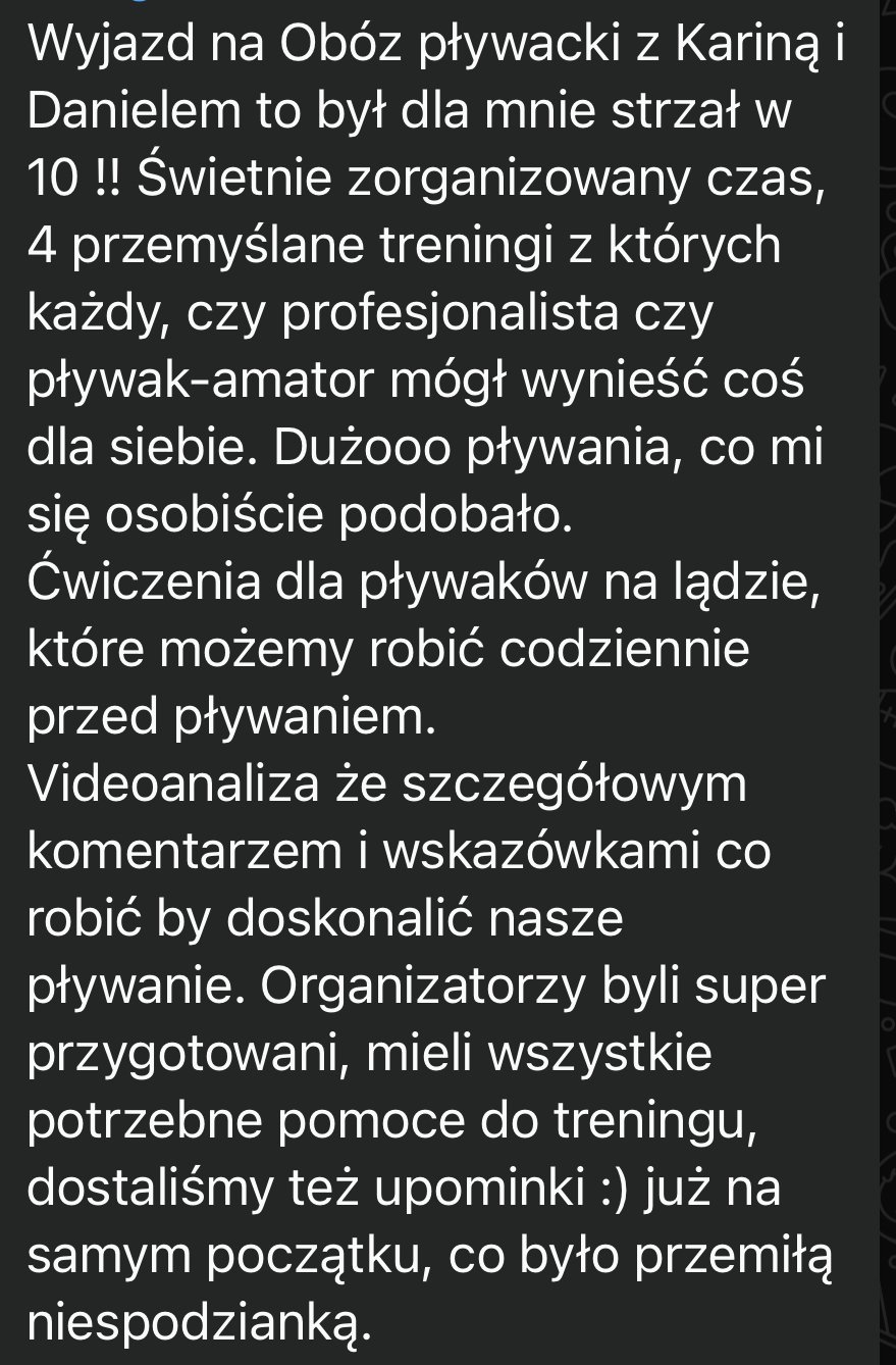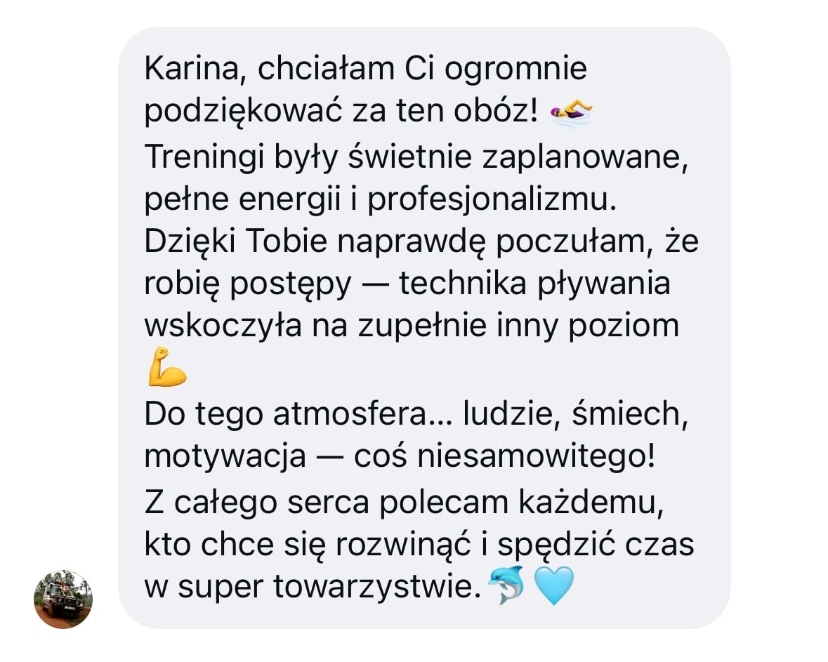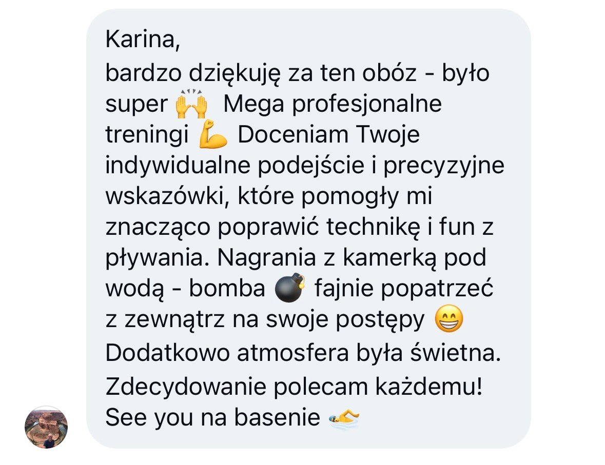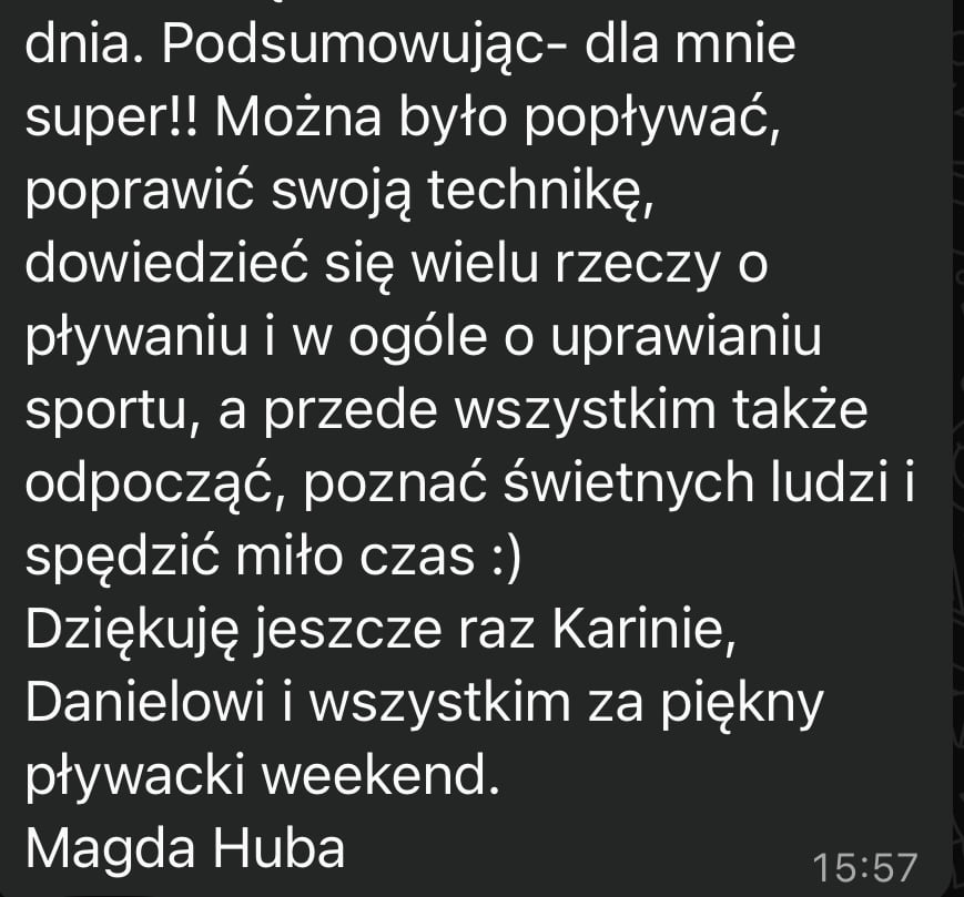 Do obaczenia, już się nie mogę się doczekać, by zobaczyć Cię na żywo i razem popływać :)