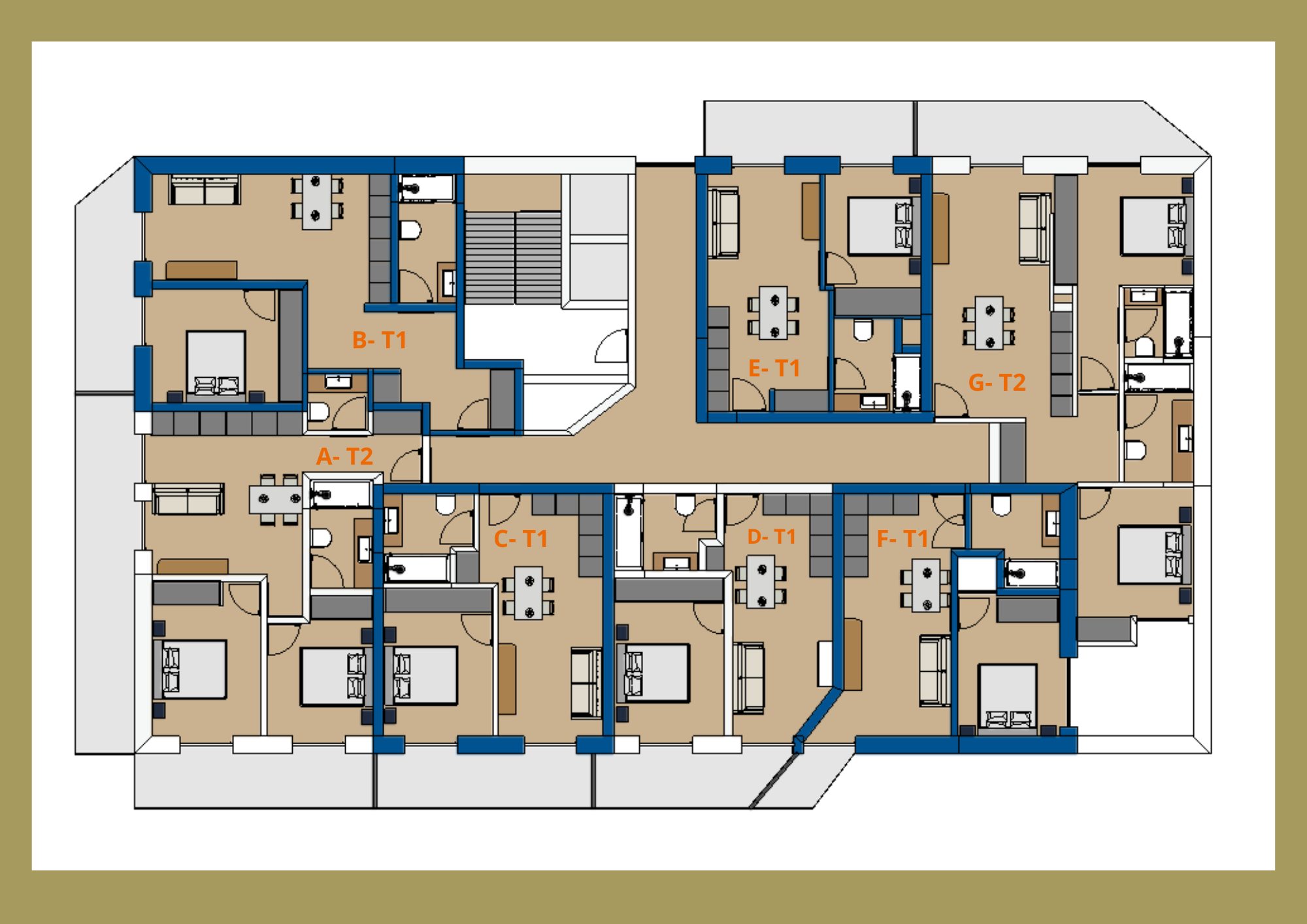 Apartamentos modernos e funcionais com áreas amplas.