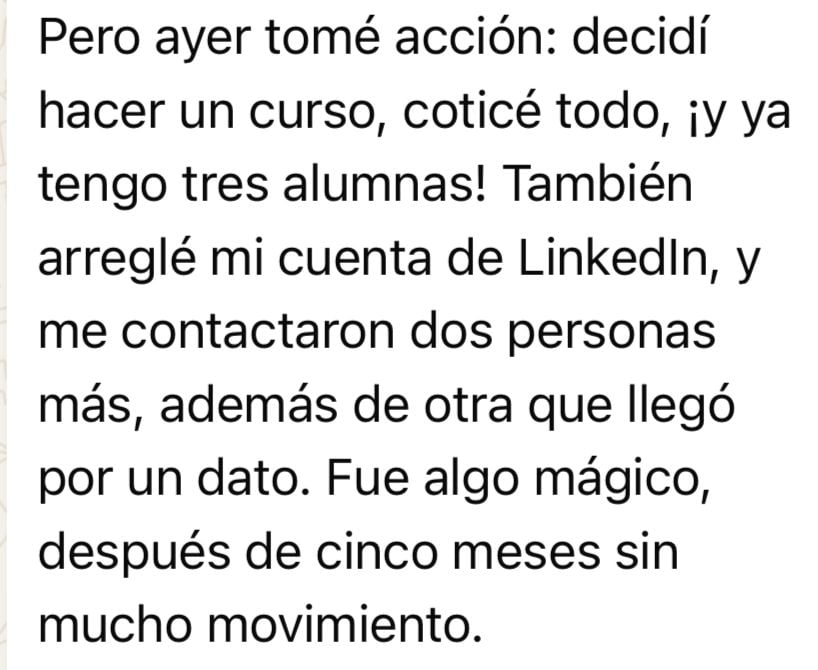 Pero tras poner en práctica este método, avanzo con foco en lo importante, manifestando una vida de abundancia y plenitud, mientras crezco con un negocio que amo impactando a miles de personas.