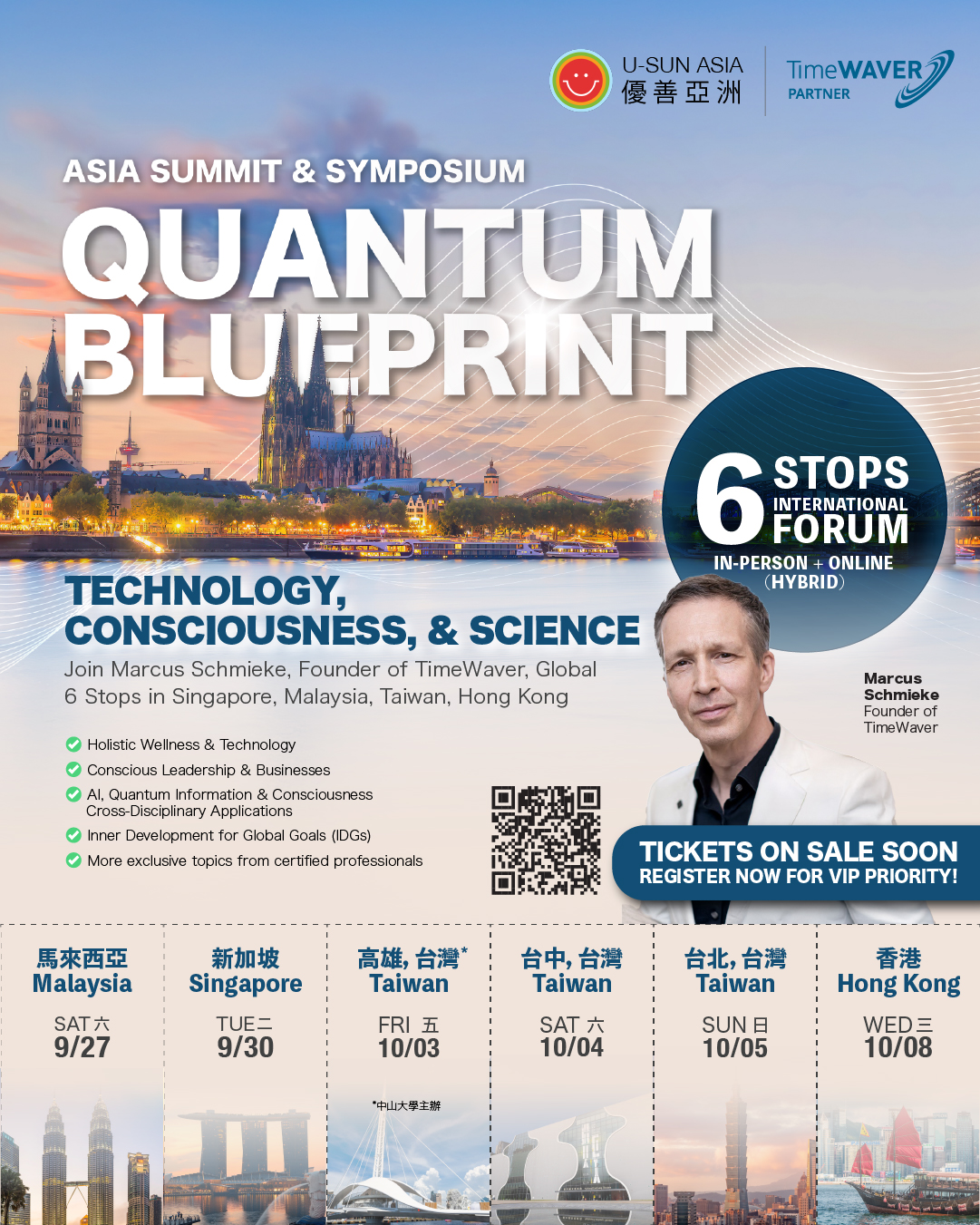 2025 Asia's summit & symposium is personally led by U-SUN Asia 優善亞洲 together with TimeWaver Founder, Marcus Schmieke, and co-created with a panel of top-tier experts. We will guide you beyond the conventional, exploring the integrated perspectives of science, philosophy, and medicine to reveal the ultimate application of the Information Field in AI and holistic health. This is your blueprint for personal and professional success.