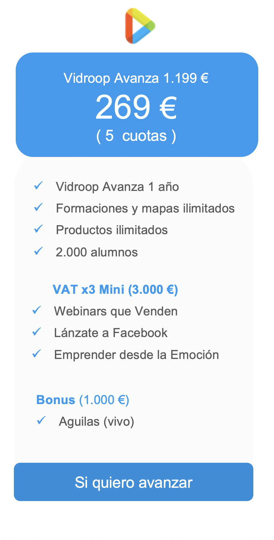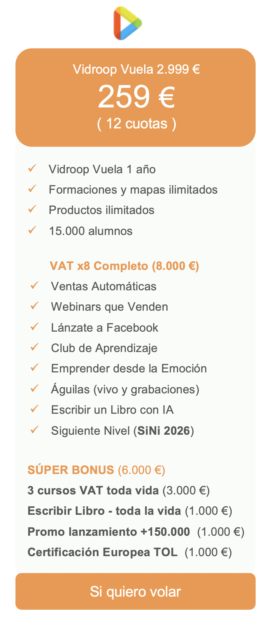 Clases en vivo cada 15 días durante 1 año para darte feedback en la grabación el momento exacto que empiezas a vender en un webinars en vivo.