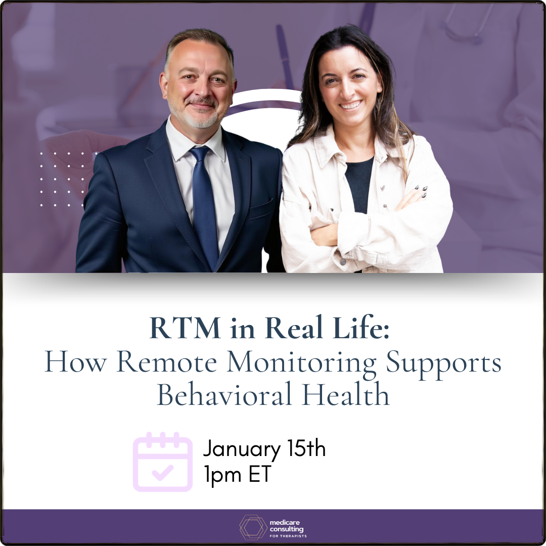 In this webinar, Gabrielle Juliano-Villani and Anthony Como walk you through the 2025 updates to Remote Therapeutic Monitoring (RTM) and explain how these changes open up new, compliant reimbursement opportunities for behavioral health providers. You’ll learn how RTM can support the care you’re already providing between sessions, what it does (and doesn’t) allow, and how therapists are beginning to integrate it thoughtfully into real-world practice.