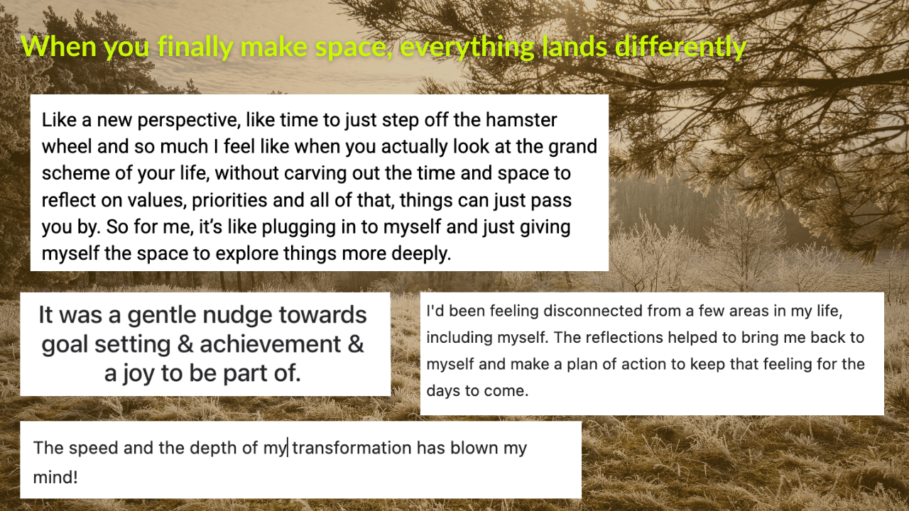 A grounding, sacred space to reconnect with your unfiltered desires, and begin to move toward them.