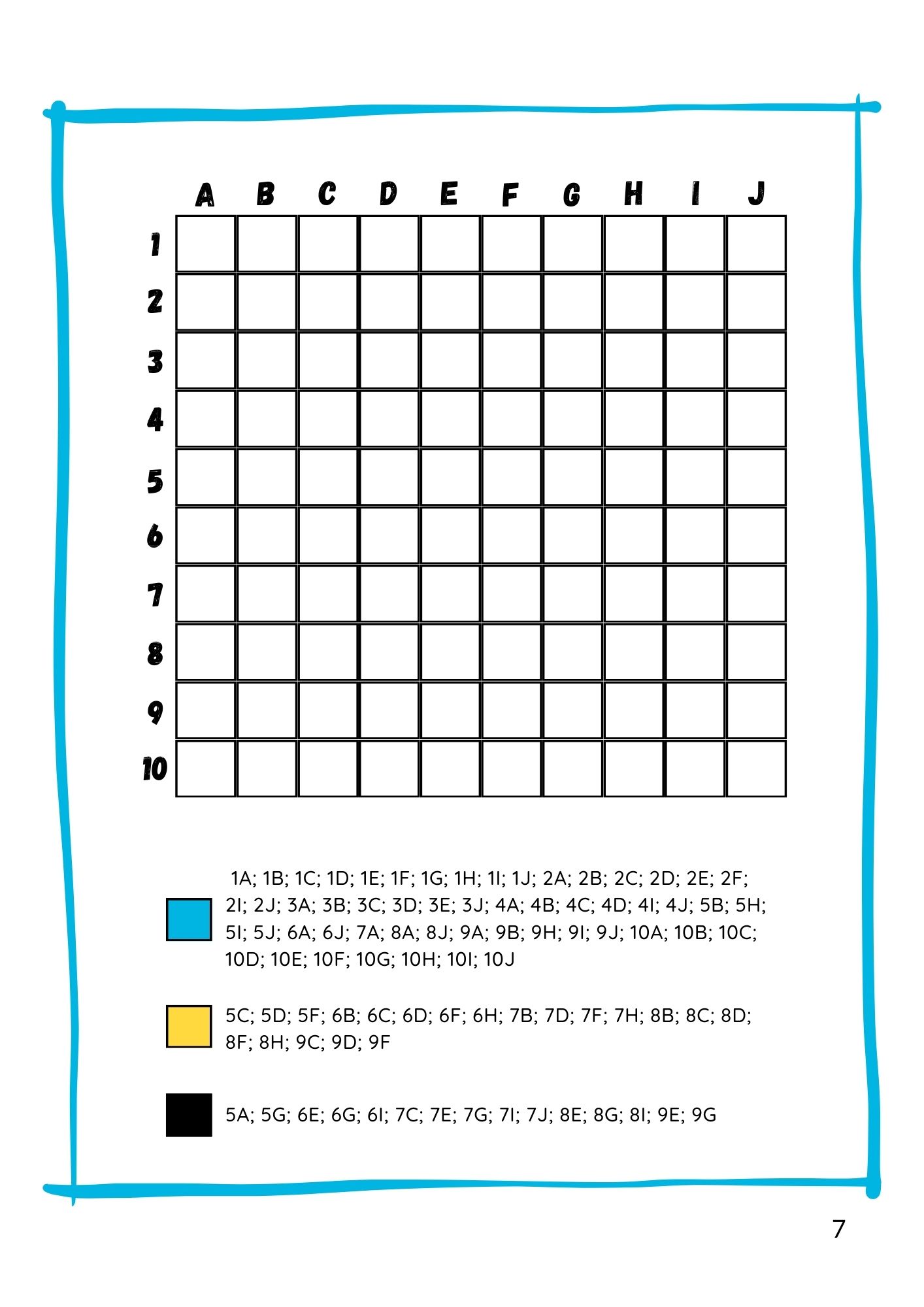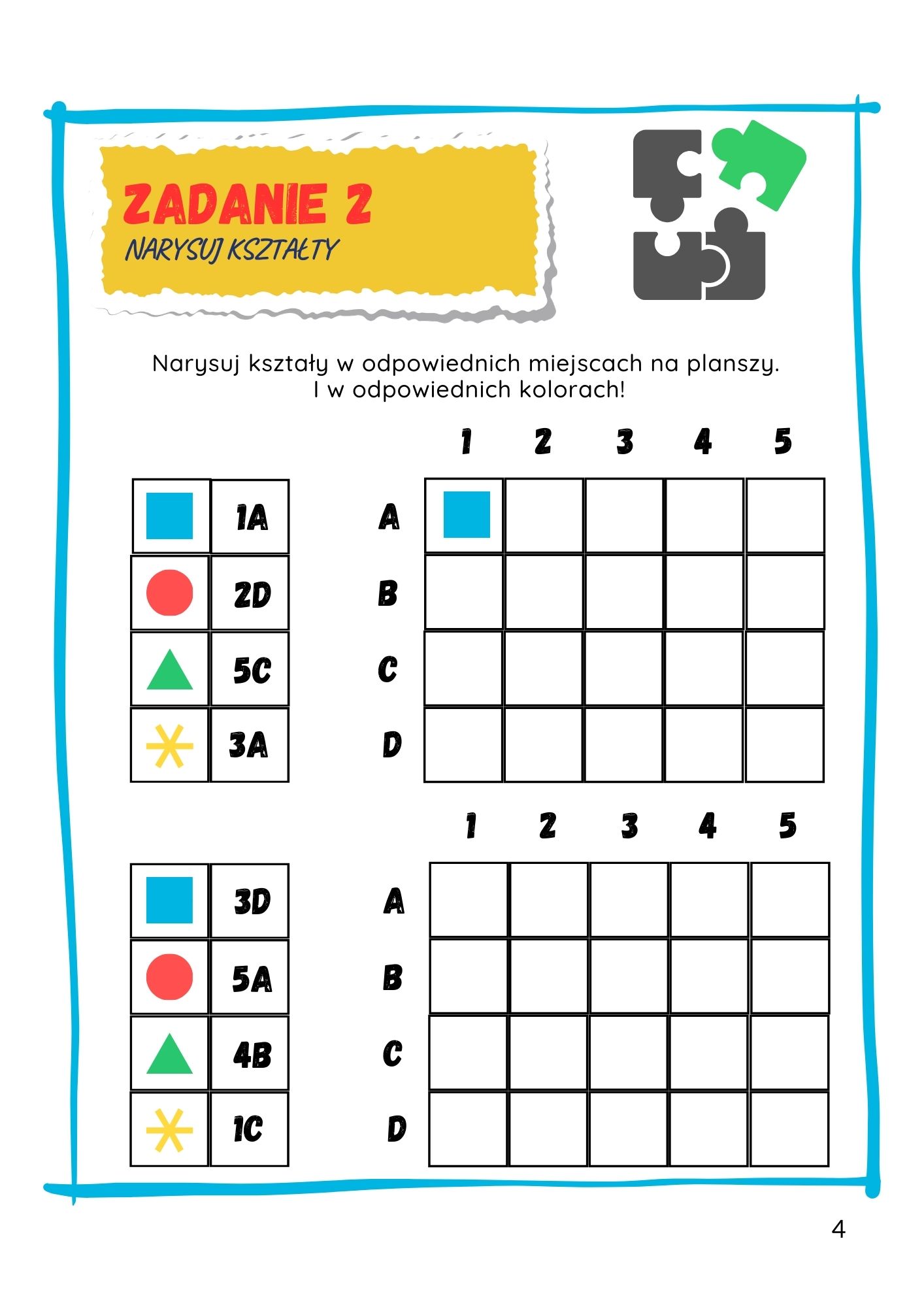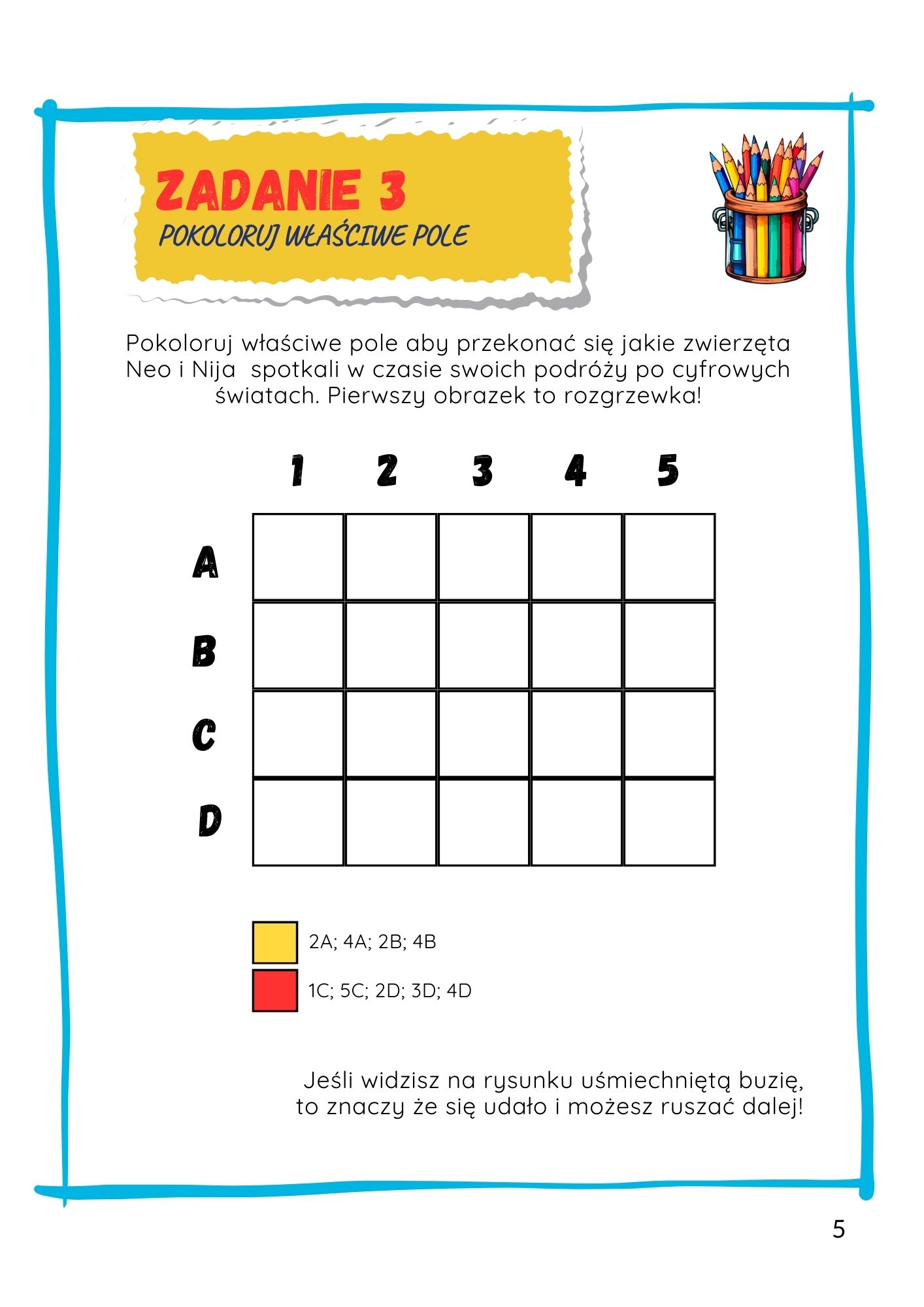 ✅ 8 stron zadań z kodowania - lokalizacja pól na planszy i kolorowanie z klucza (pixel art).